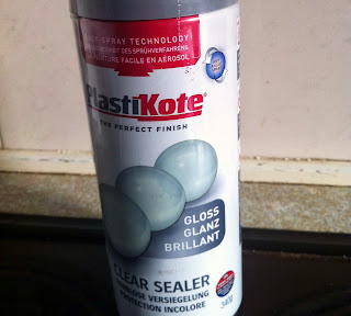 5. The final stage is to cover all the glittered areas with a clear sealer. This is a picture of the one I used which I was able to buy from the internet. It is a clear Acrylic spray which dries with a gloss finish. Spray this over all the glitter and leave shoes to dry. This will stop your glue from chipping, your glitter from getting everywhere and also helps to waterproof them.