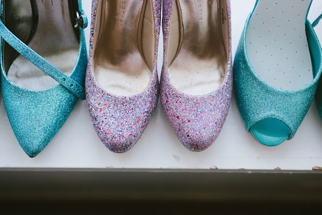 You will all remember the DIY Glitter Shoes tutorial that I posted a couple of months ago. Well not only did we glitter my shoes but we also glittered the bridesmaids shoes. The idea was that they could pick the style of shoe they wanted and then they would end up matching as we used the same glitter on them all. They turned out fantastic don't you think? I am so pleased with them and they matched the dresses so perfectly.
