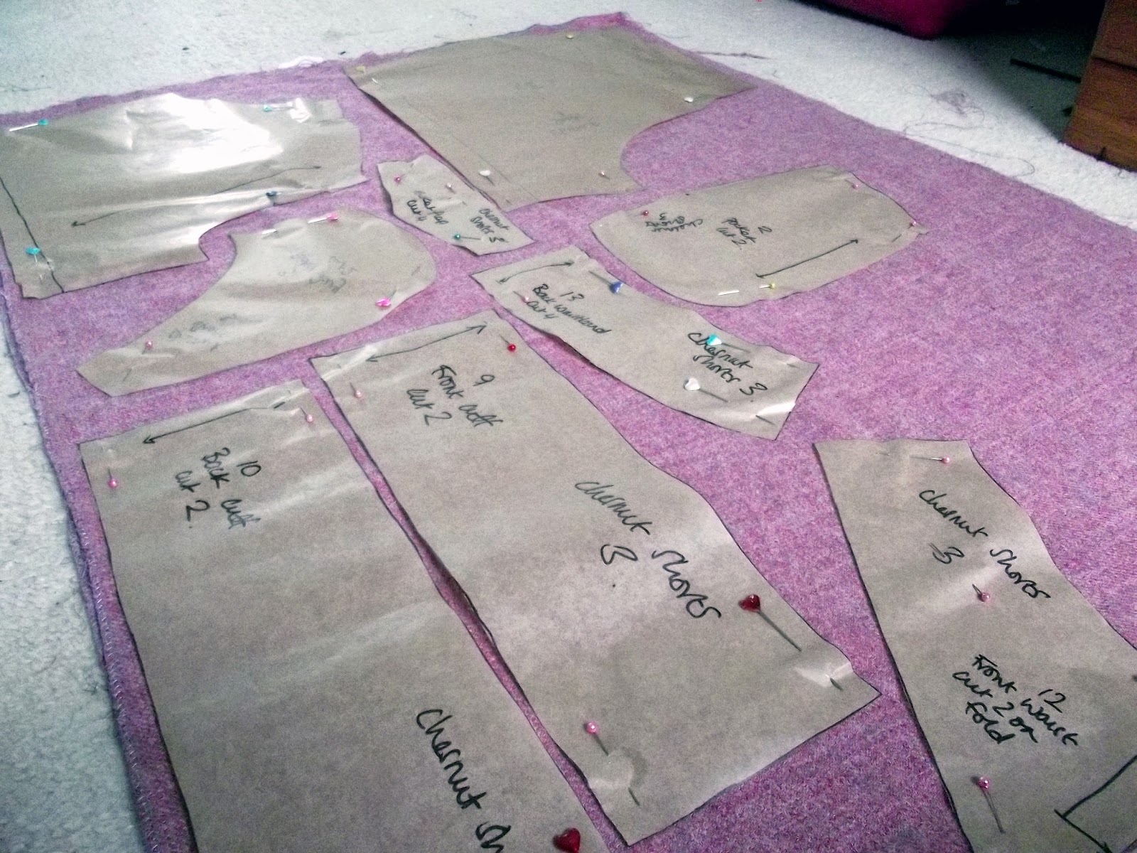 I haven't been able to get on with much craft this week... doing overtime at work and trying to prep for the kitchen being ripped out it taking up my time a bit. How do we accumulate so much stuff? I swear we have 5 incomplete Denby crockery sets in the backs of our cupboards, its no wonder I don't have any space in my kitchen. All of these were gifted to us so I don't have the heart to throw them out. Despite all that though I have managed to get around to tracing and cutting out the pattern pieces for the Chataigne shorts by Deer and Doe which have been on my to do list for a while.