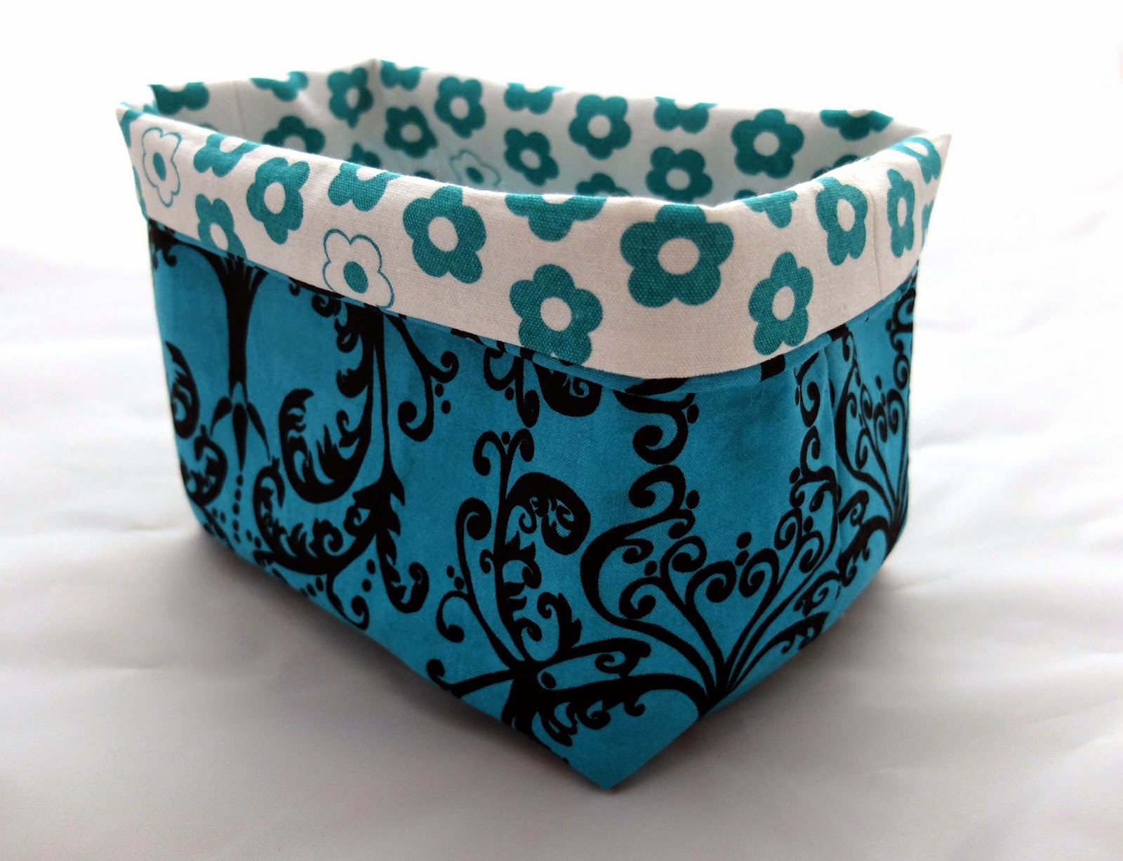 The pattern called for some lining fabric as well so I used this teal and black fat quarter which I bought about 2 years ago from ebay. Its a lovely colour match and makes a very nice lining in my opinion. The nice thing about this basket is its also reversible.