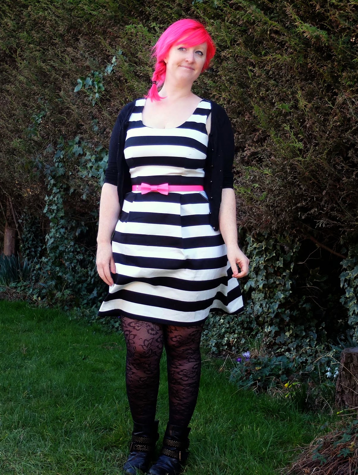 I REALLY tried with this dress to get the stripes to match across all pieces, which I wasn't far off, but I could hear May Martin in my head the whole time I was doing this telling me that it's a shame that they are slightly off. The perfectionist in me really wanted to pull the thing apart and re-sew the seam a fraction of an inch to get them perfect. Thankfully the realist in me took over and made me realise that it had already taken me three weeks to do about four hours of sewing so it just wasn't a sensible idea. I think for the meantime I just have to accept that having something wearable is the end goal, not something which is a thing of perfection. Also, sleepless nights are not very conducive to perfect sewing!