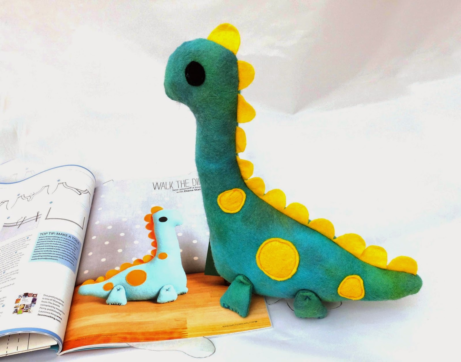 The pattern was really easy. Its thankfully mostly machine sewn which just a few sections of the feet being hand sewing, perfect! The instructions were really clear and easy to follow. I also love the way the feet are sewn on so that it makes the dino stand up.